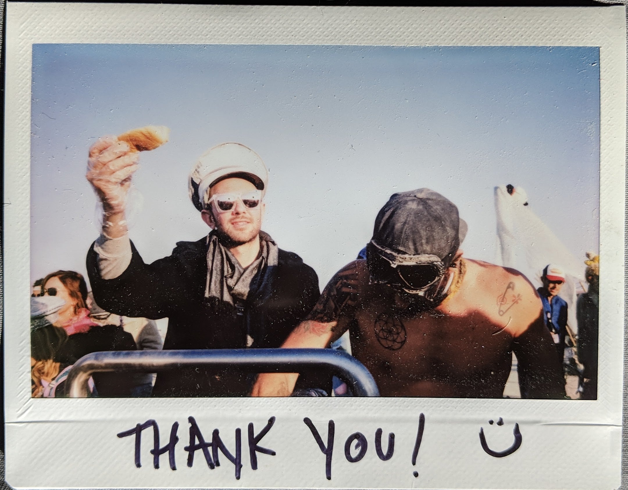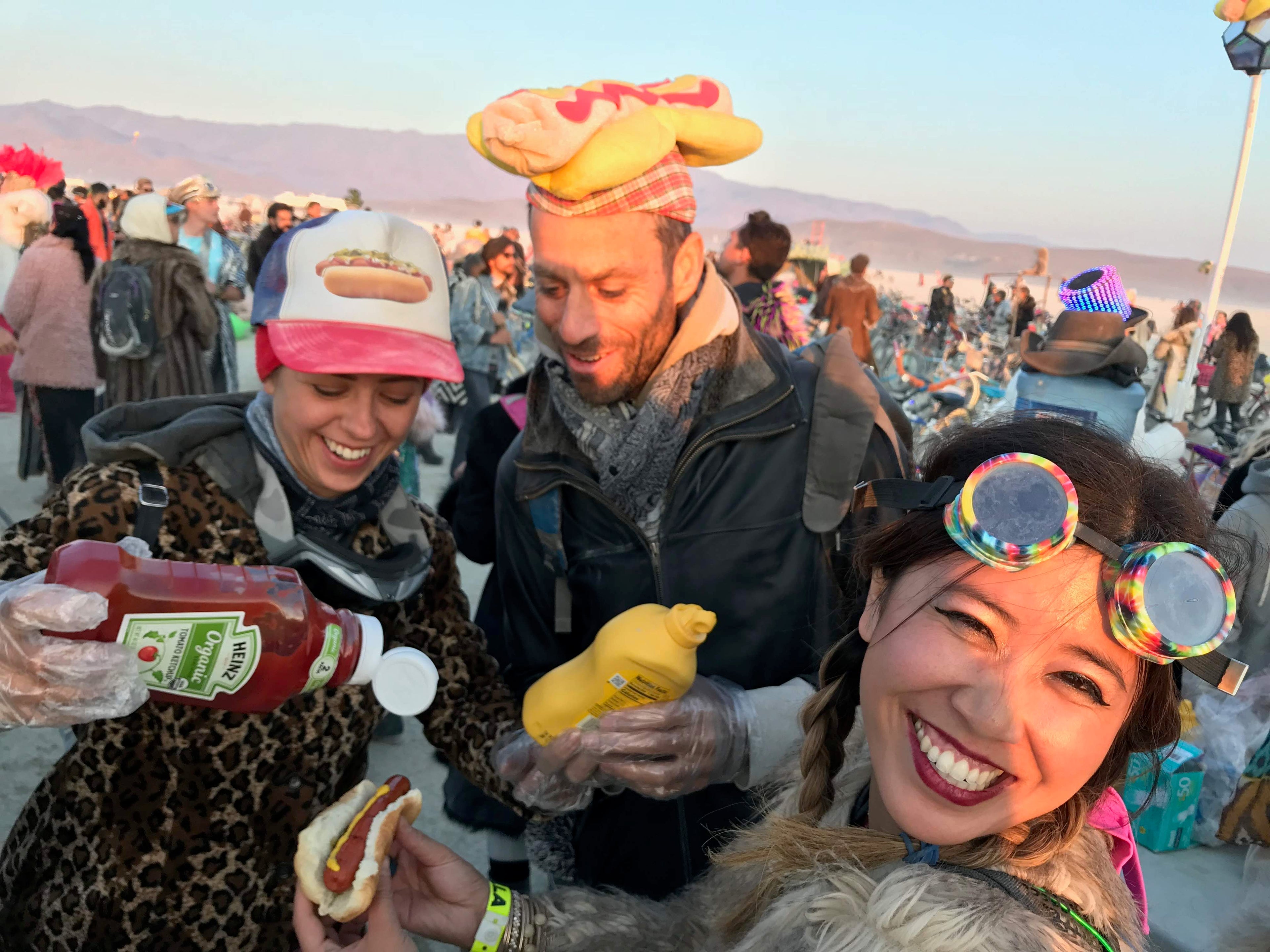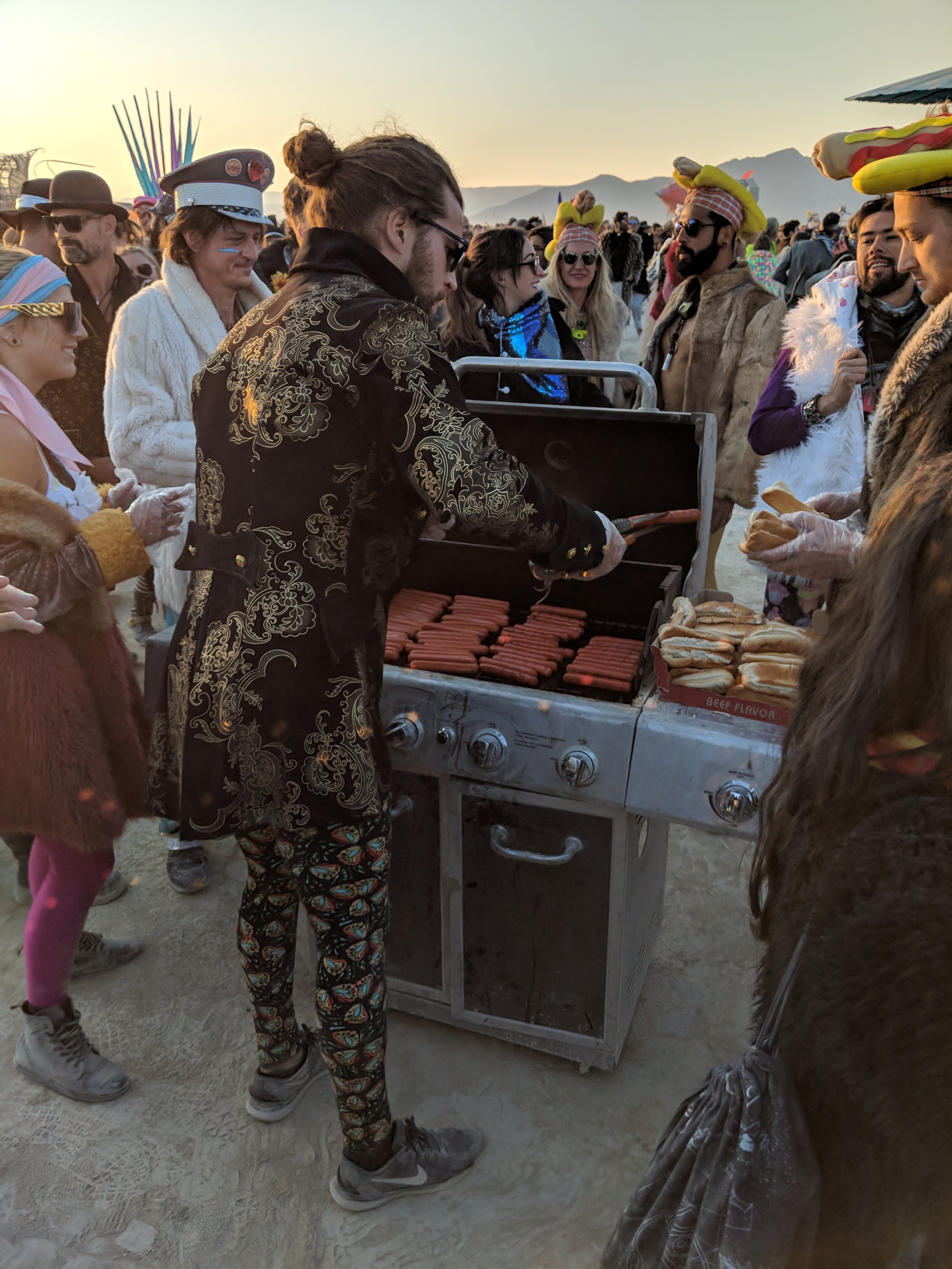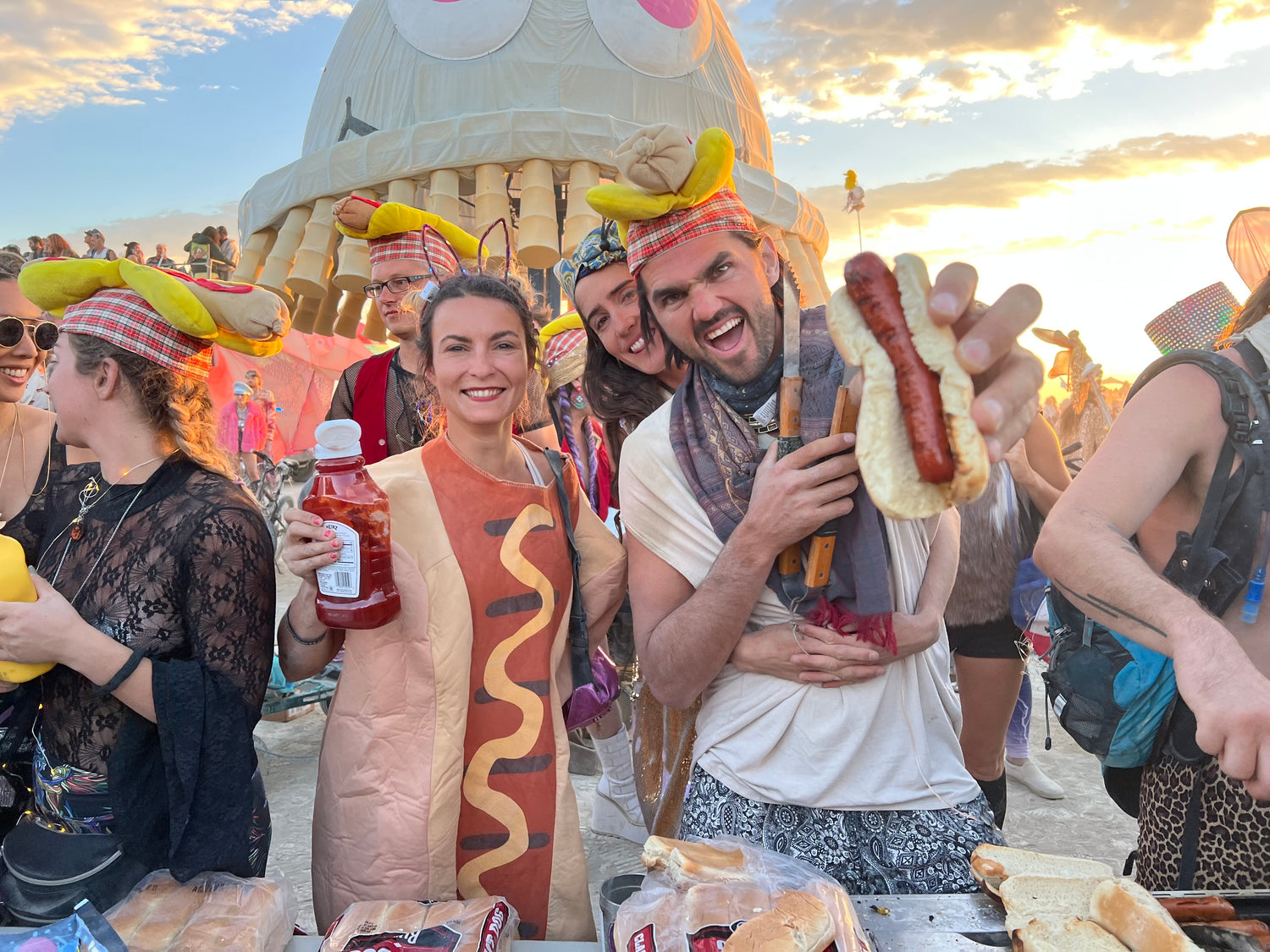 Keep your eyes peeled! Playa magic willing, you might just find us at sunrise on the playa serving up dogs.