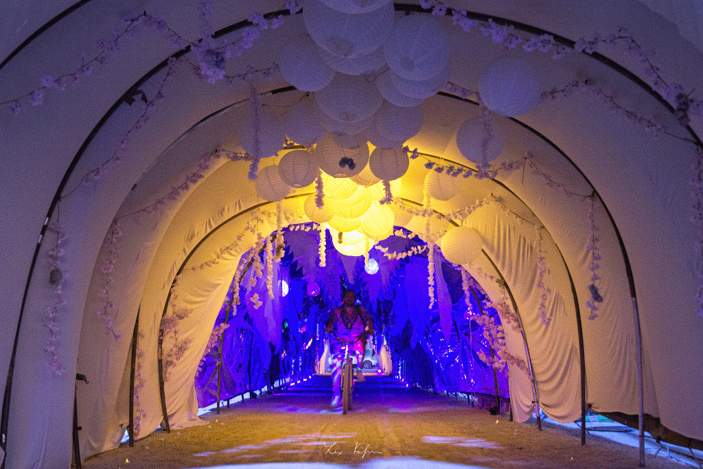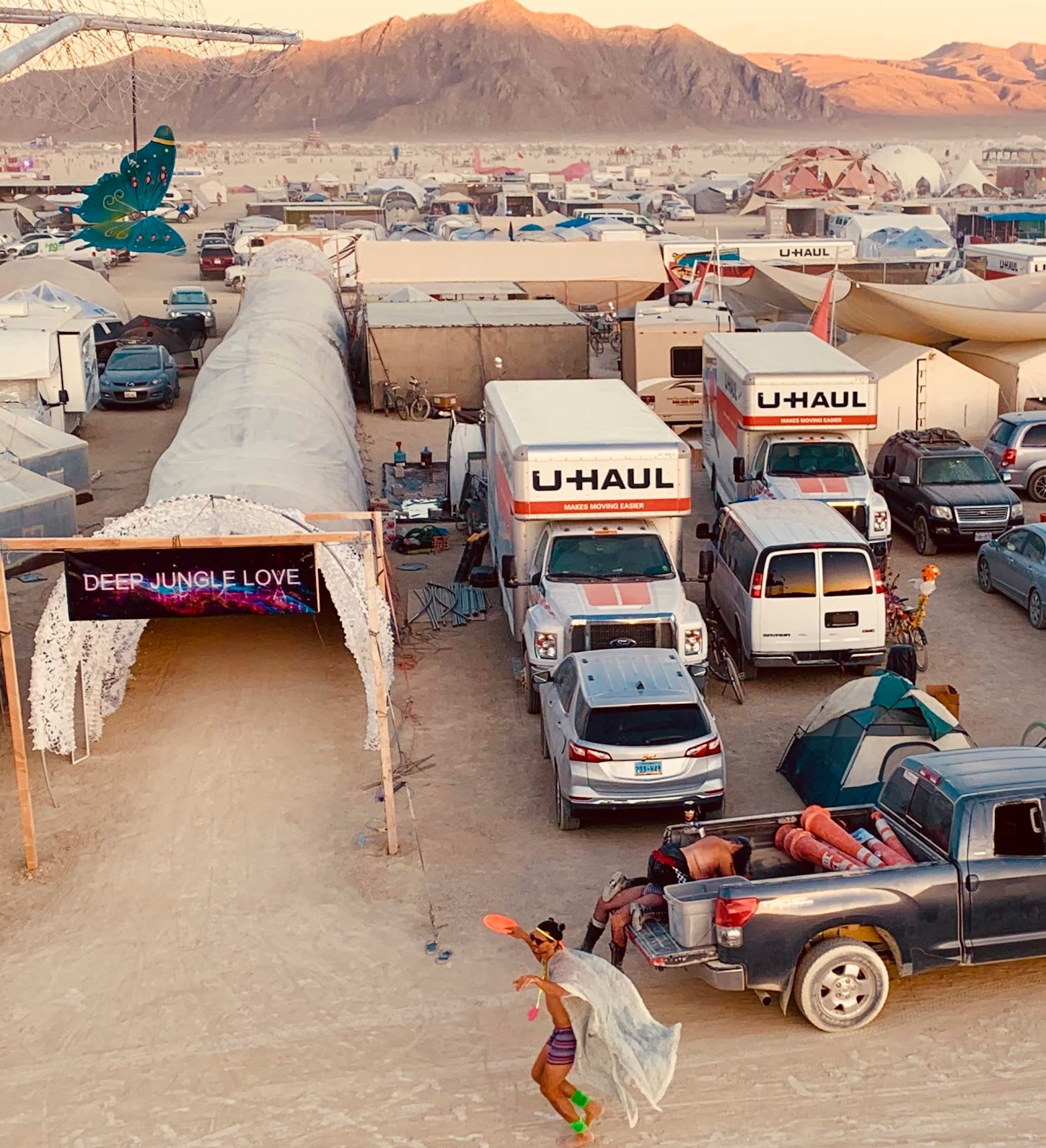 Every year, our camp constructs an otherworldly above ground portal that connects streets A to B. For some it's a shortcut, for others it's an adventure. Whatever it is to you, bike, walk, or dance your way through magical worlds and deep jungle love.